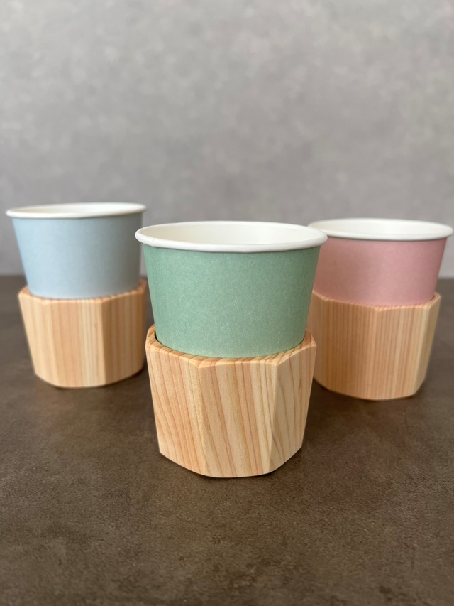 日常にも、アウトドアにも。 国産ひのきの温もりで、ちょっと特別なひとときに♪ ◆商品について 天然木・桧(ヒノキ)を使用した、紙コップ用の木製スリーブです。一般的な紙コップ(約205ml〜250ml)にぴったりフィット。アウトドアやオフィスシーンでも活躍する、シンプルで上質なデザインに仕上げました。木工職人によるこだわりの手仕事で製造しています。 ◆紙コップが使いやすく ・熱い飲み物を入れても持ちやすく ・八角形の安定感あるフォルム ・桧のやさしい香りと美しい木目 ・ビジネスの会議や来客時のドリンクホルダーとして ◆使用シーン ・キャンプ、ピクニックなどのアウトドアに ・自宅やオフィスでのコーヒーブレイク ・企業の応接室やイベントで ◆素材/仕様 ・素材:国産桧(ヒノキ) ・サイズ:外寸 約6.5cm/高さ 約5cm ・仕上げ:マット塗装仕上げ (香りや材質を活かして仕上げています) ・生産:日本/職人による手仕事 1つ1つ木目や色合いが異なります 天然木の良さをお楽しみください