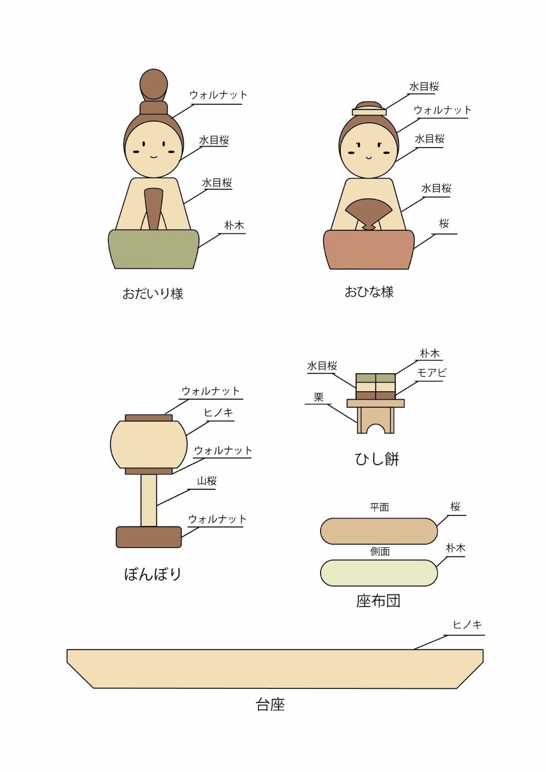天然木で彩る、手のひらサイズのひな人形
