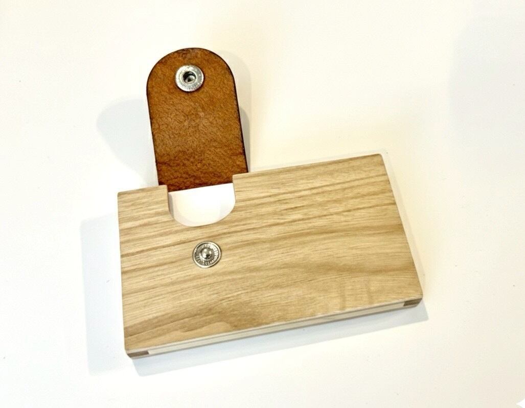 【手仕事の温もり】天然木と革の名刺ケース(栗)