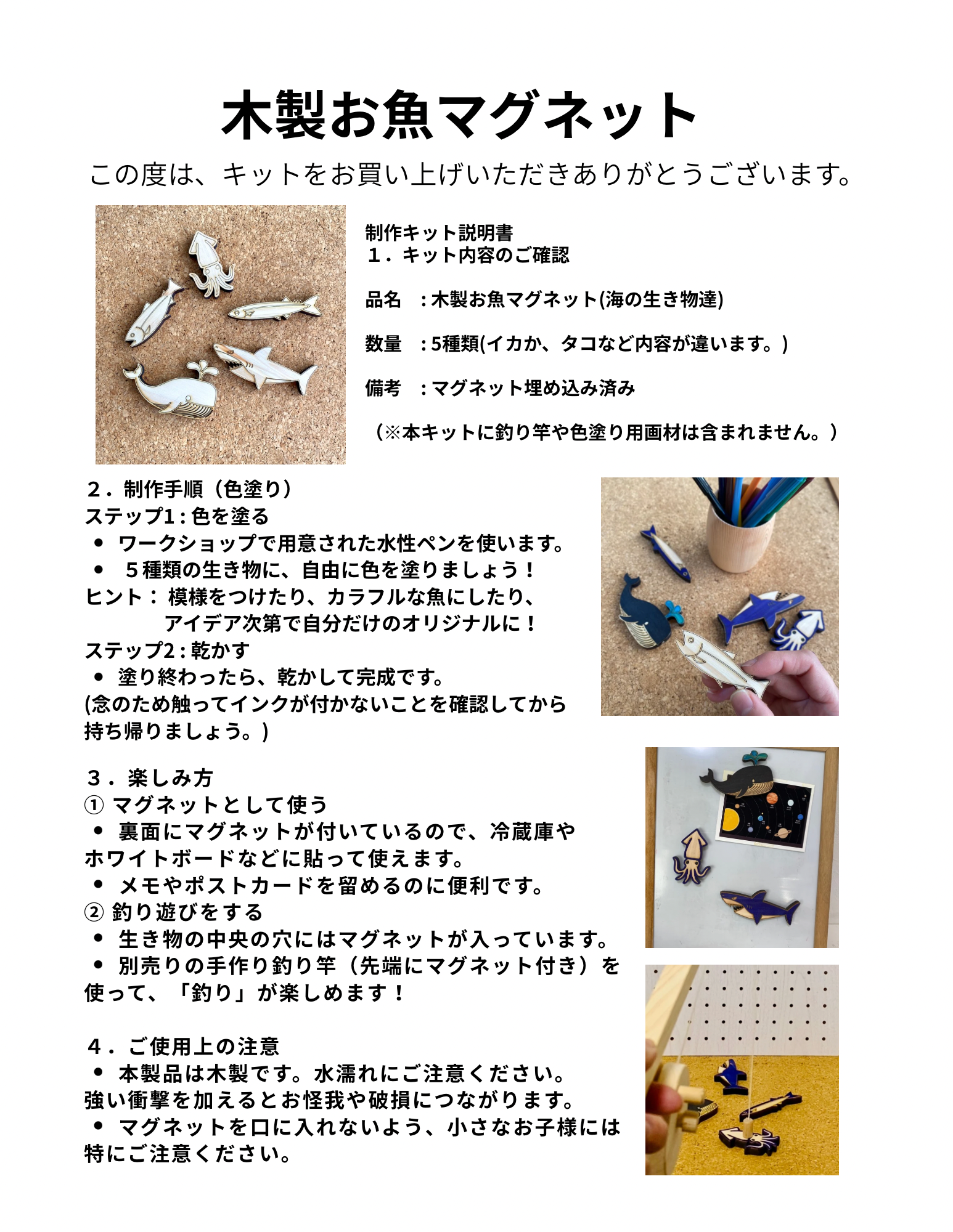木製お魚マグネット|色塗りを楽しむ体験キット